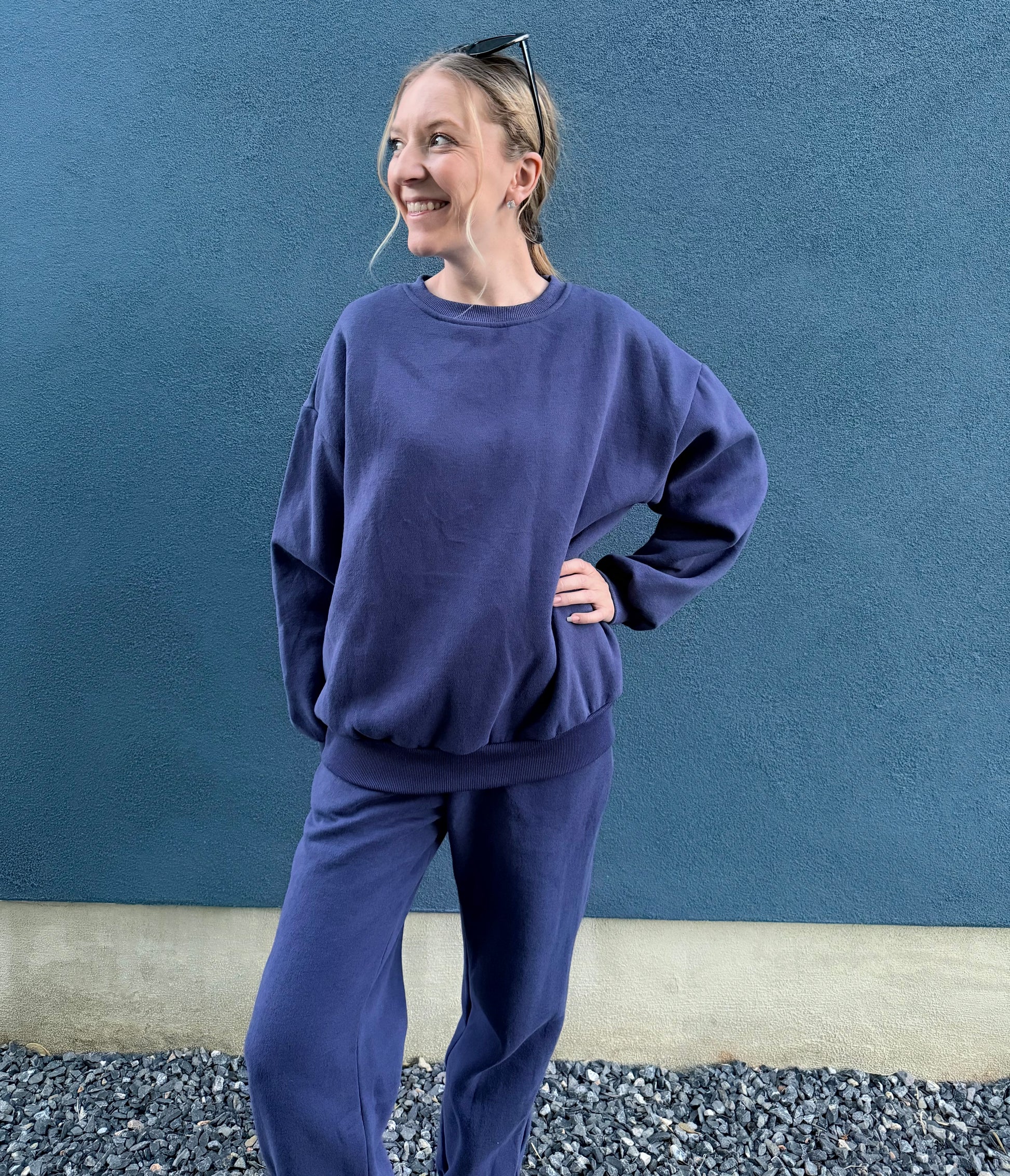 Cozy, casual, and effortlessly cool - The Blue Moon Sweat Set is your new go-to for laid-back days. The oversized crewneck sweatshirt pairs perfectly with the relaxed-fit joggers, featuring a drawstring waist and cuffed ankles for that perfect slouchy vibe. Crafted from soft, breathable fabric that feels like a hug, this set is made for lounging at home, running errands, or dressing up with your favorite boots (like shown!).
